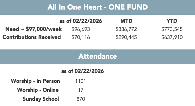 All In, One Heart is our generosity initiative to resource the ministry plan of our church and work toward funding our future church facility. Click here to learn more!